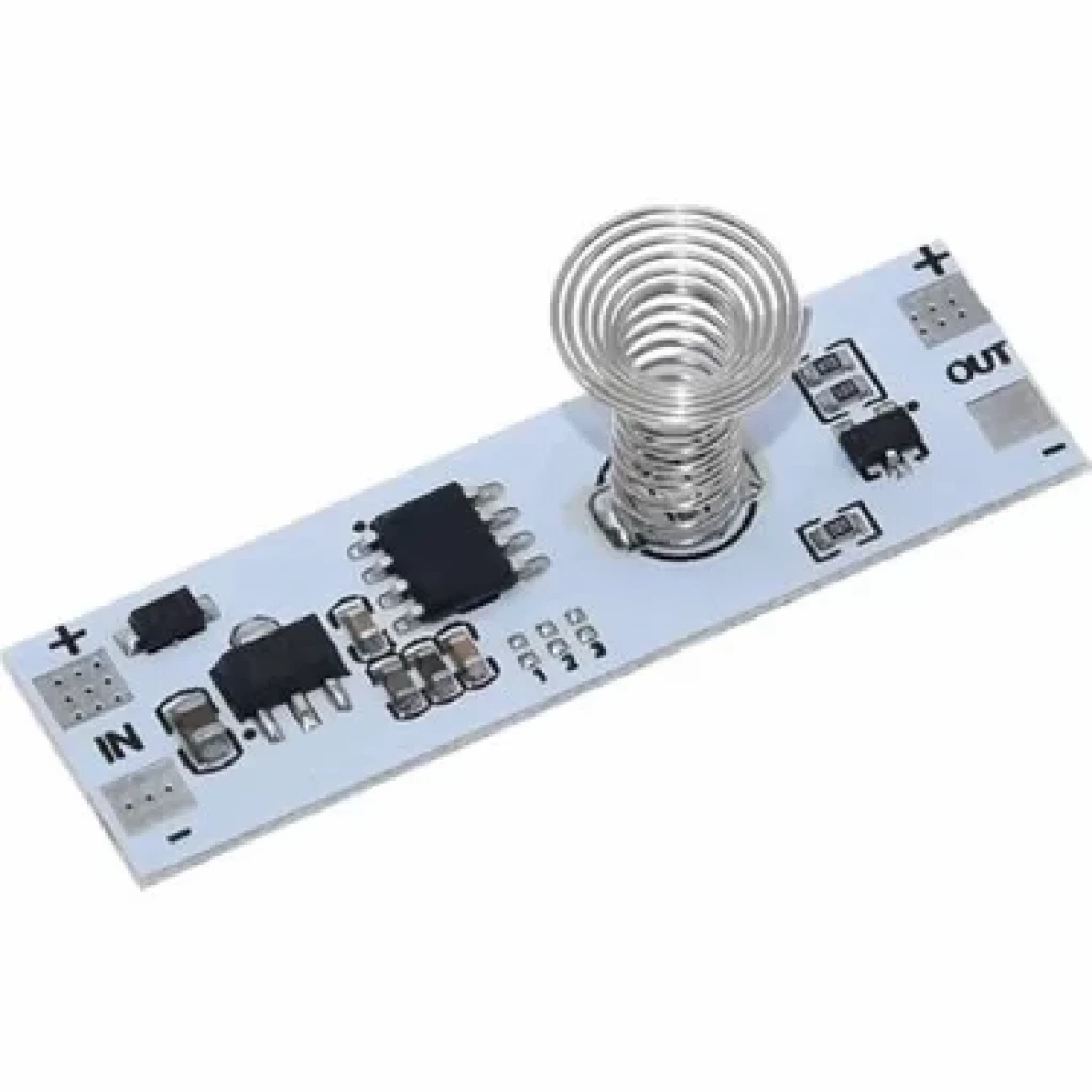 12V Kapasitif algılama sensörlü led sürücü devresi. İnce bir koruma yüzeyi altından çalışabilmektedir. Dokunmatik algılayıcı yayların olduğu kısımda 1 adet led gösterge ışığı bulunmaktadır. Bu led kapasitif dokunmatiğin tam yerini belirlemek içindir. Bu sebeple devrenin konacağı kutunun buton gelecek kısmında ışığı geçirebilecek bir şeffaflıkta olabilir. DC 9-24V arasında bir besleme ile çalışabilir. Ancak 12V ile kullanılması tavsiye edilir. Led şerit gibi ürünler ile kullanılabilir. Çıkıştaki yükü açma ve kapama özelliği bulunmaktadır. 4 farklı modu bulunmaktadır. Bu modlarda çalışma şekli değişir.